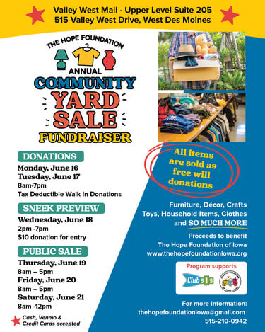 Our Annual Yard Sale is a highlight of the Hope Foundation's Calendar and our Primary Fundraiser